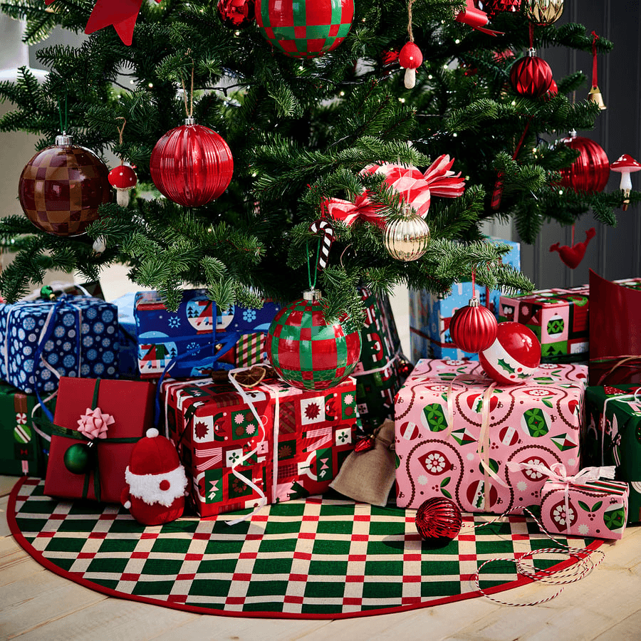 En julgransmatta är den perfekta avslutningen för ett enhetligt vinterhem. Den här varianten i klassiskt rutmönster ger rummet en varm och nostalgisk känsla, samtidigt som den skyddar golvet och ramar in granen med charm.