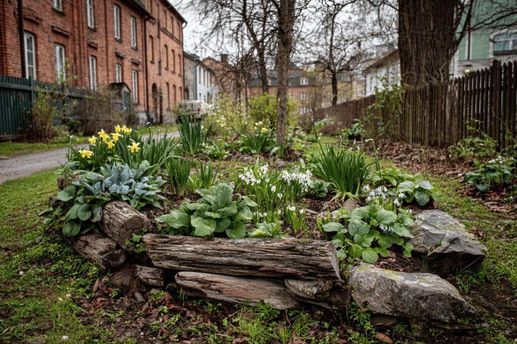 Det som verkligen skapar woodlandkänslan är de små detaljerna som påminner om naturens egen miljö. I en skog finns alltid mossiga stenar, brutna grenar och gamla rötter som ger både struktur och liv. Genom att ta vara på sådant material i trädgården får planteringen mer karaktär samtidigt som den gynnar insekter och mikroliv.