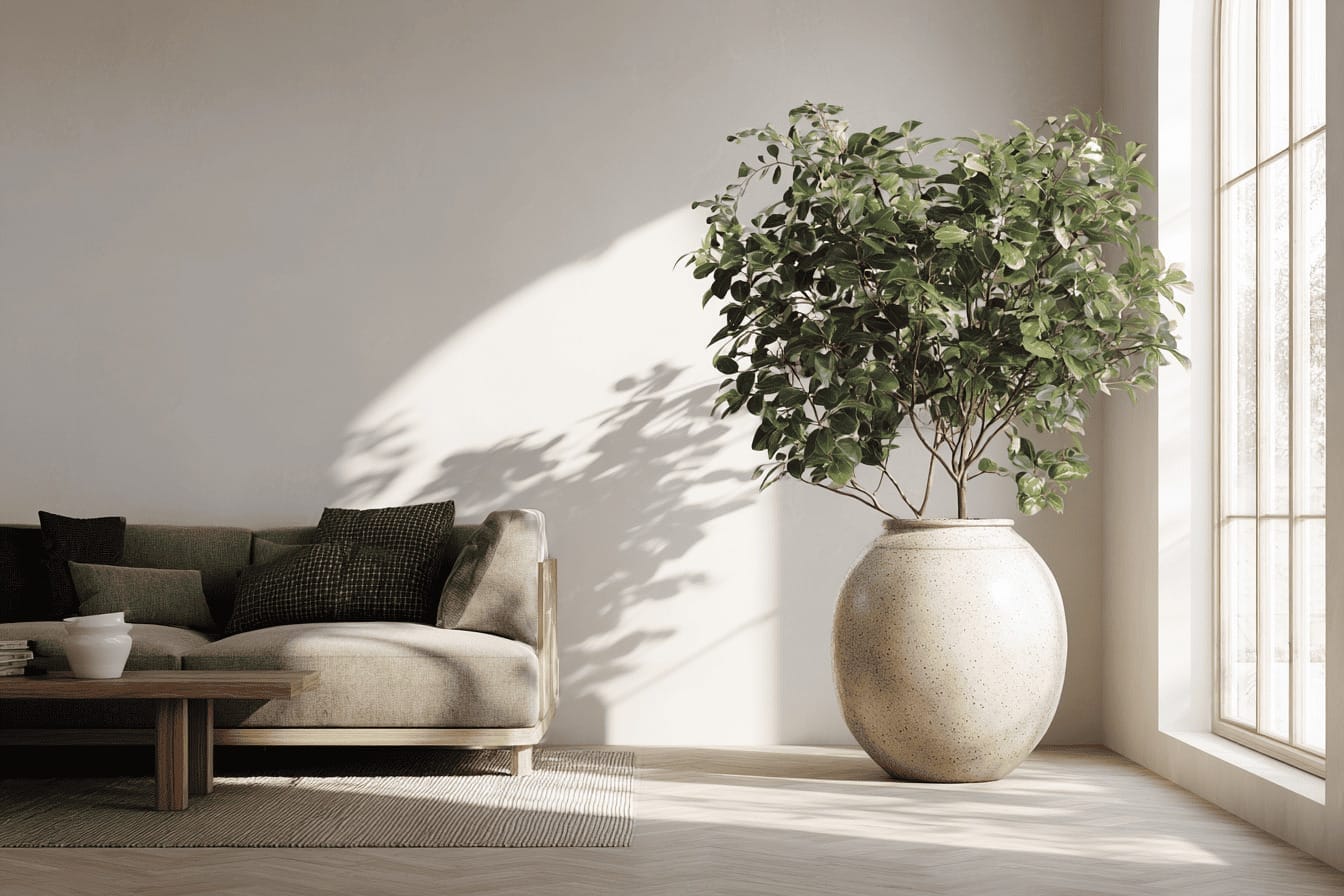 Med en enda detalj kan ett helt rum förvandlas. En stor kruka med en pampig växt är ett enkelt och tidlöst knep som lyfter hemmet till en ny nivå.